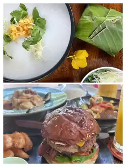 The hotel seamlessly blends natural beauty with comfortable accommodations, exuding Southeast Asian charm. After a busy morning, lunch at the hotel restaurant is a welcome respite. Expecting an ordinary burger due to the quick turnaround, you'll be pleasantly surprised by its exceptional flavor, far exceeding expectations.