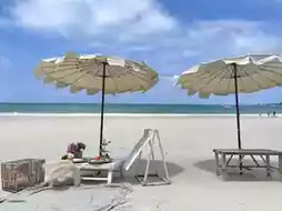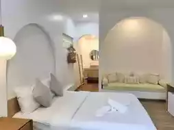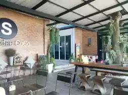 This resort is not a large resort. There are bungalow rooms and rooms in a building. Inside the resort, there is a cafe by the beach and a sitting area in front. Customers staying here can walk down to play in the sea. There are props and a corner for taking pictures on the beach.
