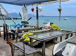 • Comfortable seating 🪑 Options include wooden tables and waterfront seats, ideal for relaxation. Plenty of activities and games available.