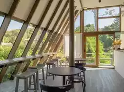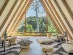 If you are a sweet tooth and are looking for a chic cafe in a quiet atmosphere amidst nature, Brown Cabin Chocolate Cafe is a must-visit destination. This cafe is located in the same area as Baan Ploy Sea on Koh Samet. It stands out with its warm decorations, using natural wood tones that go well with the surrounding green trees. It is perfect for relaxing and enjoying desserts and drinks in a quiet corner amidst nature.