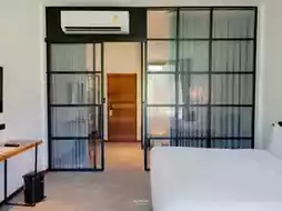 There are many types of rooms here. The room we stayed in today was the Jungle Deluxe, which is designed in a modern and warm style with natural tones that emphasize comfort for the eyes. It comes with a green garden view, adding a sense of closeness to nature. There is also a bright orange swimming pool by the sea where you can enjoy the panoramic view, with plenty of space to relax. And don't miss the Baan Ploy Samed Restaurant, serving fresh seafood and a variety of other menus. For cafe lovers, don't miss the Brown Cabin Chocolate Cafe, a lovely cafe located within the accommodation area.