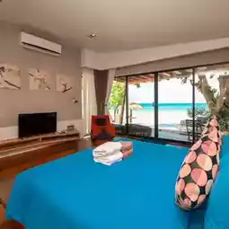This is a room that has one villa located in front of the beach by the sea.