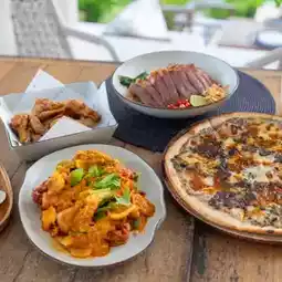 For food, there are both Thai, fusion and Italian food. I've tried it. The beef fried rice is very delicious. The truffle mushroom pizza is good. The aroma hits the nose. I really like it.