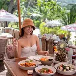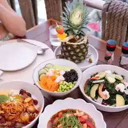 In addition to the chic corners where you can take lots of photos, this restaurant is famous for its healthy food. If you come here, you must try the ๐ผ๐ซ๐ค๐๐๐๐ค ๐๐๐ง๐๐ข๐ฅ ๐๐๐ก๐๐, a kale salad with cooked shrimp and avocado, topped with a salad dressing of balsa mix sauce and pomegranate. The shop's recipe is very delicious. It goes well together. I like it. And there are many other menus, Thai food, international food, drinks are available, both mocktails, juices, coffee. Sit and relax until the sunset. This place is famous for the most beautiful sunset on the island. โจ๐