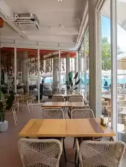 A charming café and restaurant located on Koh Samet, offering a fantastic mood and vibe. Situated right on Sai Kaew Beach, the turquoise sea and relaxing atmosphere make it a perfect spot to unwind. The venue provides various seating options, including indoor air-conditioned zones and outdoor areas. The café section serves a wide range of beverages, including coffee, non-coffee drinks, fresh juices, and an array of baked goods. On the restaurant side, you can enjoy a diverse menu featuring both Thai and European cuisines. Whether you want to sip on a drink in the café or enjoy a laid-back meal, this place caters to all preferences. Even if you're not staying at the resort, you are welcome to visit the restaurant. If you're planning a trip to Koh Samet and looking for a beautiful café and restaurant with a great ambiance, make sure to add this spot to your list!