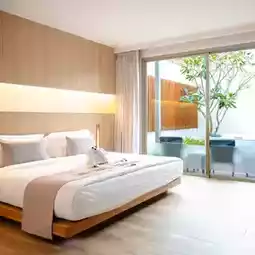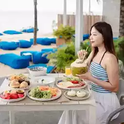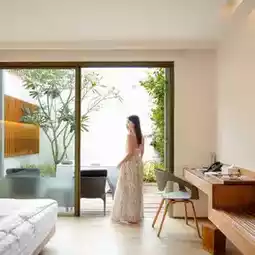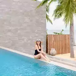 The resort is decorated in a minimalist style, clean, comfortable to the eyes, the swimming pool has a beautiful sea view. The concept here is to welcome guests from 16 years old and up, focusing on adult guests in particular because they want to relax in a quiet and private way. In addition, the resort is shady, the atmosphere is great.