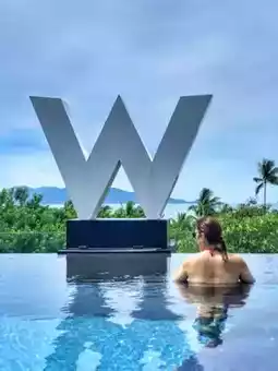 After enjoying a delicious breakfast, we decided to take a refreshing swim in the main W infinity pool. The pool was impressively large, offering plenty of space to relax and swim comfortably. The water was perfectly warm, making it an ideal spot to cool off without feeling cold.
