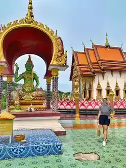 Although some of the buildings like the ubosot are in traditional Thai architecture, most of the complex is build in Thai-Chinese style. The Wat Plai Laem temple houses two giant, colorful statues that will immediately catch the eye.