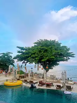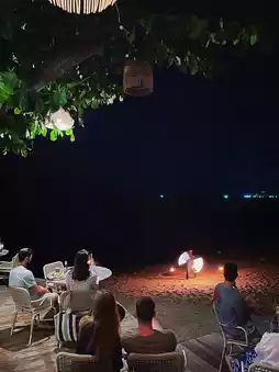 SAii Beach Club combines cozy vibes with curated cuisine: Bean/Co serves coffee and desserts, while Terra & Mar Restaurant offers hearty meals. The menu features Mediterranean, Asian, and Thai flavors, with standout dishes like green papaya salad, grilled chicken wings, steak, and seafood platters. Evenings come alive with fire dance performances on the beach, turning dinner into a visual feast.