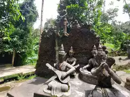 Wander through lush jungle pathways, where stone statues peek through the greenery, accompanied by the soothing sounds of waterfalls and gentle streams. Each sculpture tells a story—some spiritual, some mythical, and some deeply personal. The atmosphere is quiet, mystical, and perfect for introspection or photography.