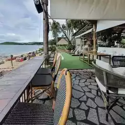 ร้านนี้ตั้งอยู่ใน Fisherman’s Village โซนบ่อผุด ติดทะเลแบบไม่มีอะไรมาบังสายตา บรรยากาศโปร่ง โล่ง ลมพัดเบาๆ ตลอดวัน