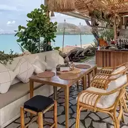 ร้านตกแต่งด้วยวัสดุธรรมชาติ โทนไม้และสีเอิร์ธ เหมือนยกความบาหลีมาไว้ที่สมุย มีโซนให้เลือกนั่งทั้งโต๊ะปกติ เก้าอี้ชายหาด หรือจะนั่งเบาะบนพื้นดูพระอาทิตย์ตกก็ได้