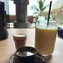 • Sip coffee by the pool Listen to the waves 🧋