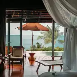 Cliff-top resort with panoramic ocean views. Villas with plunge pools, spa, rooftop bar, private beach cove