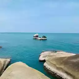 The name might sound odd, but it has a story! According to legend, an elderly couple set out to arrange a marriage for their son. However, their boat capsized in the sea, and they tragically lost their lives. Their bodies transformed into rocks on the beach—one resembling the grandfather 🍆 and the other resembling the grandmother 🌸.