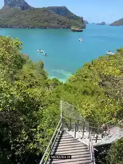 Traveling to Talay Nai begins with a speedboat or tour boat ride from Koh Samui, taking approximately one hour. Upon arrival at Koh Mae Koh, visitors must climb a steep 10-20 minute climb up a steep mountain. However, once you reach the viewpoint, you'll be greeted by a breathtaking view of Talay Nai. The vibrant green water of the lake contrasts sharply with the surrounding limestone mountains, making it a must-see photo opportunity.