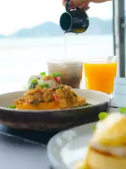 After a party, you can sleep in for a long night. Breakfast is served all day, featuring fusion dishes. For those who prefer a healthy meal, there are also healthy drinks and food available.
