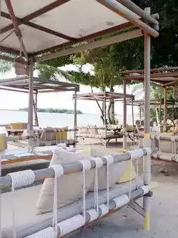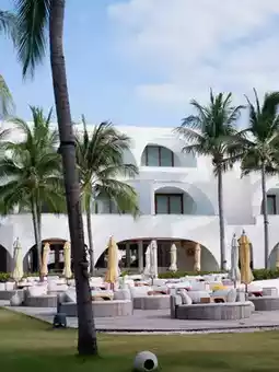 🌴 One of Koh Samui's most adorable locations is SALA Samui Resort, located on Chaweng Beach. The resort's minimalist white theme contrasts with the sky and coconut trees, and its cute yellow props make for stunning photos. It's a popular spot for both relaxation and photography enthusiasts. The resort offers a pleasant atmosphere, and the beachfront restaurant is located right on the beachfront. In the evening, chairs and umbrellas are provided for relaxing and dining.