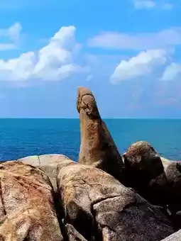 Hin Ta resembles a male, while Hin Yai resembles a female. They were formed by erosion from seawater🌊, wind, sunlight, and the erosion of coastal cliffs🌊 over hundreds of thousands of years, creating a shy smile on anyone who sees them.