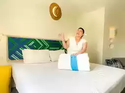 Beyond the rooms, the hotel also offers a variety of common areas, including a co-working space, relaxation areas, and even a free-to-use outdoor pool for those who want to cool off or simply relax by the pool for a truly enchanting atmosphere.