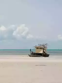 📝: One of the most beautiful beaches for watching the sunset. The water is calm and shallow. The palm trees are beautiful, and it's a great spot to watch the sunset. It's not crowded. It's also beautiful during the day. At low tide, there's a unique old shipwreck, and the white sand and crystal-clear water are incredibly beautiful.