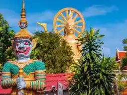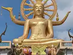 Wat Phra Yai, Koh Samui 🛕 is located on Bophut Beach 🌅 and is a popular tourist attraction for both Thais and international tourists. 🌍 The highlight is the "Big Buddha" 🙏, a dazzling golden Buddha image in the Mara-Vijaya posture 🌟. Standing 12 meters tall 🏯, it is visible from afar and is a significant symbol of Koh Samui. 🏝️ Surrounding the Big Buddha are pavilions and terraces where you can enjoy panoramic sea views 🌊 and cool breezes 🍃, perfect for relaxing and taking beautiful photos 📸. There are also souvenir shops 🎁 and offerings 🌸 for tourists to purchase for good fortune. 🌈 Wat Phra Yai is not only a spiritual center for the people of Koh Samui 🕊️, but also a stunning viewpoint 🏖️ and a must-see landmark when visiting Koh Samui. 🌺✨