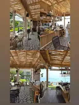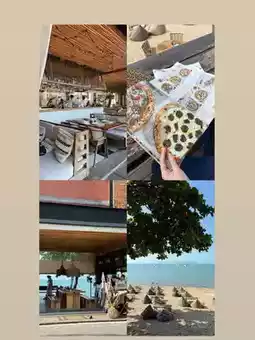 The restaurant has two seating areas: beachfront and outdoor seating. The angle we took the photos from was from the beach. The staff were friendly and the atmosphere was great. Most importantly, the lighting was spectacular. Recommended dishes: The pizza was delicious. The large tray had lots of cheese.