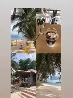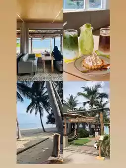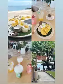 The beach is truly beautiful, and the vibe is so chill. As for me, I'd like to sit in the cafe and enjoy a cool drink and a delicious yogurt. It feels like I want to lose weight, but it's true.