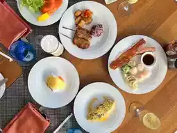 Breakfast is of high quality, featuring Prosecco to start the day and large, sweet coconuts. The view from the breakfast area is stunning.