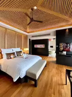 As for the bed, I like it better than the round bed in the Royal Pool Villa. The regular bed is softer and more comfortable, and my legs don't even touch it.