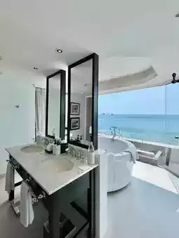 From the bedroom, living room, and the extended balcony overlooking the sea, to the standout feature—the bathroom. Unlike other rooms, this bathroom boasts a jacuzzi tub right in the center, allowing you to soak while enjoying a 180-degree ocean view. In the evening, you can also enjoy a clear view of the sunset right from your room.