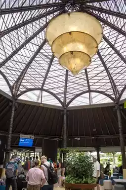 There are no cold steel structures here, nor the hustle and bustle of crowds. Instead, there are vast green plants, thatched waiting shelters, and slowly rotating fans overhead. Rather than an airport, it feels more like a tropical resort built in a garden, and from the moment you land, your body and mind naturally relax.