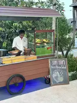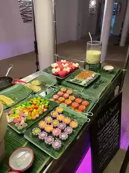 The dinner buffet held every Saturday is like a mini-market or temple fair. The hotel features Thai food stalls, featuring signature dishes, grilled seafood, and Thai desserts. The hotel also features Khon performances and dances from various regions of Thailand. It's a truly impressive experience.