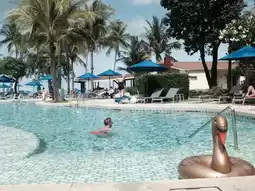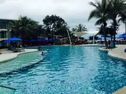The resort features a large outdoor swimming pool for both adults and children 💦, along with a poolside bar and a sea-view restaurant that caters to families and groups of friends 👨👩👧👦.
