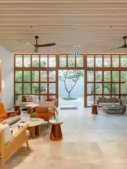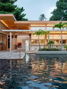 This cozy, minimalist accommodation is located right on the beach in Koh Samui, with stunning views from every angle.