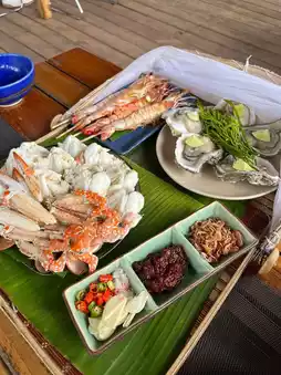 The restaurant focuses on using fresh ingredients sourced daily. Having dined here multiple times, I was so impressed by the delicious flavors that I found myself flying to Koh Samui frequently just to enjoy their food. The freshness and large size of the ingredients, especially the blue crabs and oysters from Surat Thani province, are remarkable. The crab meat comes in large chunks with no small bits—truly a must-try for blue crab lovers.