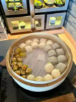 Breakfast is plentiful, offering local Thai dishes like grilled chicken, grilled pork, green curry, and the richly flavored braised eggs, as well as international dishes like eggs Benedict, bacon, pancakes, and cereal. There's also a fresh salad bar with a variety of dressings. Every dish is beautifully presented and made with five-star ingredients, truly befitting a luxurious beachfront resort on Koh Samui.