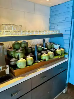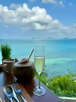 The highlight is the complimentary sparkling wine served early in the morning, adding a special touch to your vacation. For those who don't drink alcohol, there's also a refreshing, large coconut water option.