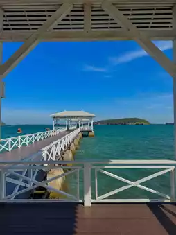 #Receive a discount without relying on luck One of the check-in points, a popular photo spot on Koh Sichang, a white wooden bridge extending into the sea. This is Asdang Bridge, Koh Sichang. It is a very beautiful bridge, white contrasting with the color of the sea. Taking pictures comes out very beautiful. Anyone who has plans to visit Koh Sichang must go take pictures here on this bridge. I guarantee that it will come out very beautiful. #Travel review #Koh Sichang #Chonburi #Visit Chonburi #Chonburi is worth visiting
