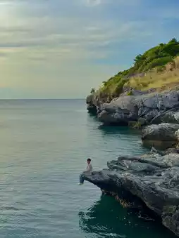 #GetDiscountWithoutLuck Another popular photo spot that people visiting Koh Sichang must come to take a check-in photo here is Laem Chakraphong. The Unseen spot is a rocky point that juts out into the sea. When taking a photo, you will see a seat on the rock that is a sharp point. People will sit and dangle their legs to take photos. It is a unique photo spot on Koh Sichang. Anyone who plans to visit Koh Sichang must come to this spot. It is very beautiful. #KohSichang #KohSichangYouCanTravelAlone #Chonburi #VisitChonburi
