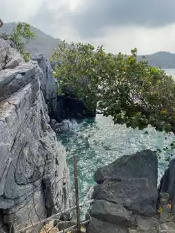 The "Tham Thalu" viewpoint has a pathway that may be steep or narrow—travelers should wear appropriate footwear and exercise caution, especially on potentially slippery surfaces.