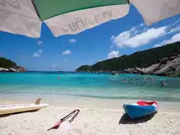 A small island located not far from Koh Tao, just about an hour's boat ride away. Koh Nang Yuan features white sandy ridges connecting two smaller islands, contrasting beautifully with the crystal-clear blue sea. For adventurers, hiking to the top is highly recommended to enjoy a panoramic view of the entire island.