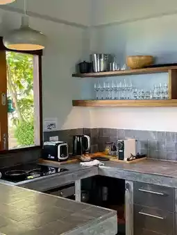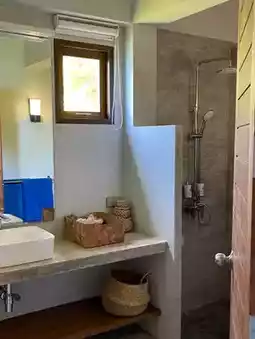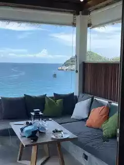 The villa is quite impressive, with panoramic views of Thian Beach and the sea right in front of the villa. The area is stunning, and I even spotted baby sharks and turtles. The beach is just a short walk away, and there are plenty of activities to enjoy.