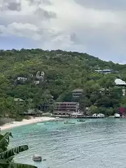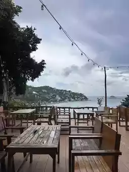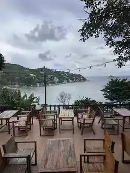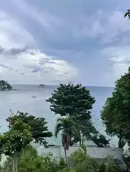 🏝️ The view from the resort is stunning. When the sun shines through, the water is incredibly blue. However, the day we went, it was quite dim. Even without the light, it was beautiful.