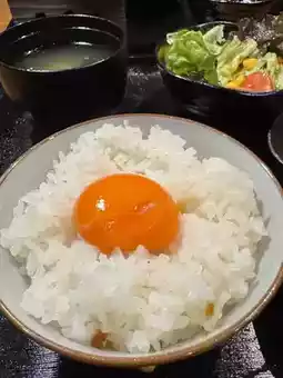 ☑︎Comes with rice, salad, miso soup, and raw egg