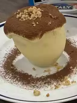 The bowl was made of white chocolate, and when I broke it, the mascarpone that flowed out was irresistible🤤