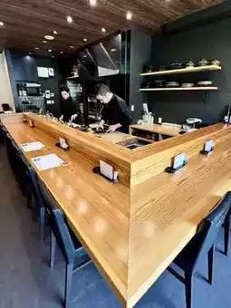 The restaurant interior features a beautiful modern Japanese design ✨ Plus, since the building is newly constructed, everything is incredibly clean and fresh 🥺