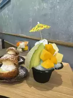 This shop originally sold gluten-free cheese and terrines for takeout, but now they're offering shaved ice for dine-in. 🍧