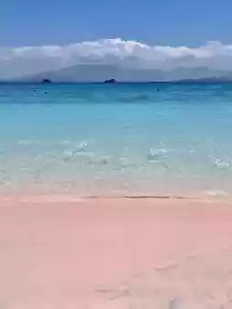 This beach paved with red coral powder contrasts beautifully with the crystal clear water.