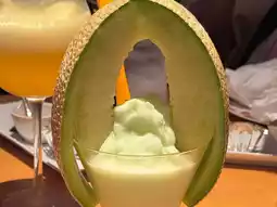 Highly recommended are the visually appealing and delicious honeydew melon cocktail slush and salted watermelon cocktail. Whiskey enthusiasts can savor single glasses of rare Japanese whiskeys like Hibiki 21 Years and Yamazaki 18 Years here.